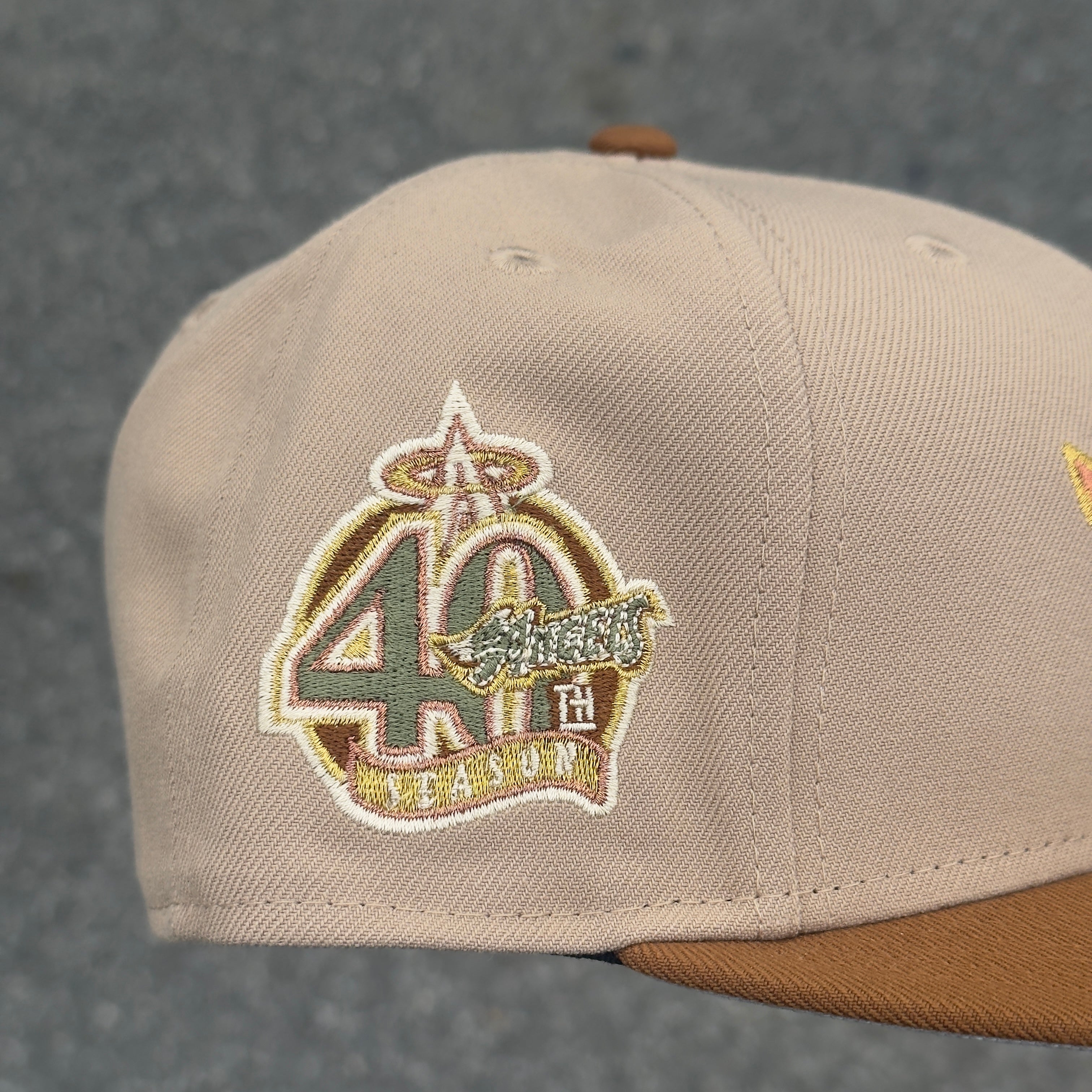 Anaheim Angels 40th Season Side Patch MLB Fitted Hat New Era 5950(Camel/Wheat/Copper/Gold/Olive/Gray)