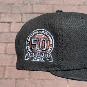Anaheim Angels 50th Anniversary Side Patch Fitted Hat New Era 5950 (Black/Copper/Silver/Gray)