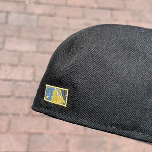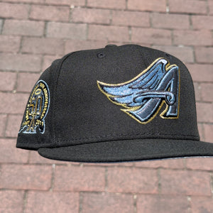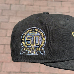 Anaheim Angels 50th Anniversary Side Patch Fitted Hat New Era 5950 (Nlack/Gold/Metallic Blue-Gray/ Gray)