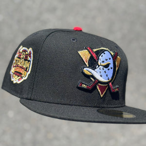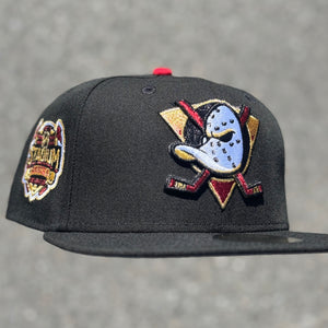 Anaheim Ducks Stadium Series Side Patch Fitted Hat New Era 5950 NHL (Black / Metallic Red / Metallic Gold / White / Gray)