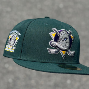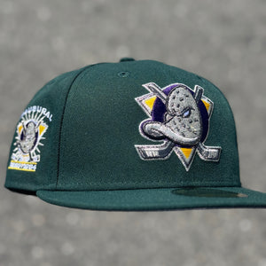 Anaheim Ducks 93-94 Inaugural Season Side Patch Fitted Hat New Era 5950 NHL (Green / Green / Silver / Yellow / Purple / Gray)