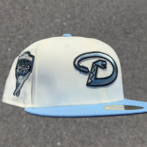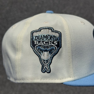 Arizona Diamondbacks 1998 Inaugural Season Side Patch Fitted Hat New Era 5950 (Off White/Sky Blue/Silver/Metallic Blue Gray/Black/Gray)