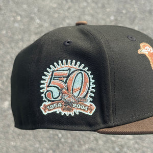 Baltimore Orioles 50th Anniversary Side Patch MLB Fitted Hat New Era 5950 (Black/Brown/Copper/Iris/Green)