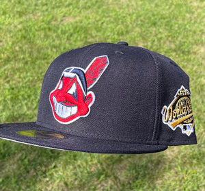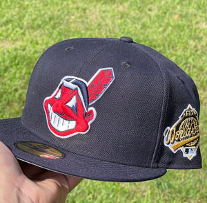 Cleveland Indians Chief Wahoo Banned logo 1995 World Series Fitted with patch on opposite side(Navy Blue) + Free Pin