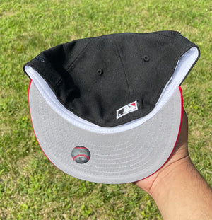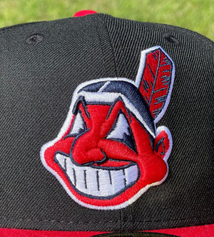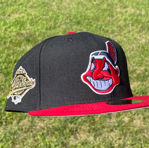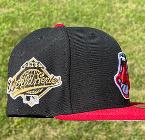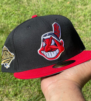Cleveland Indians Chief Wahoo Banned Logo Two Tone 1995 World Series Fitted (Black/Red/Gold/White/Gray) + Free Pin
