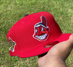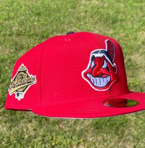 Cleveland Indians Chief Wahoo 1995 World Series Side Patch Fitted Hat New Era 5950 (Red/Navy Blue/Black/Gold/White/Gray) + Free Pin