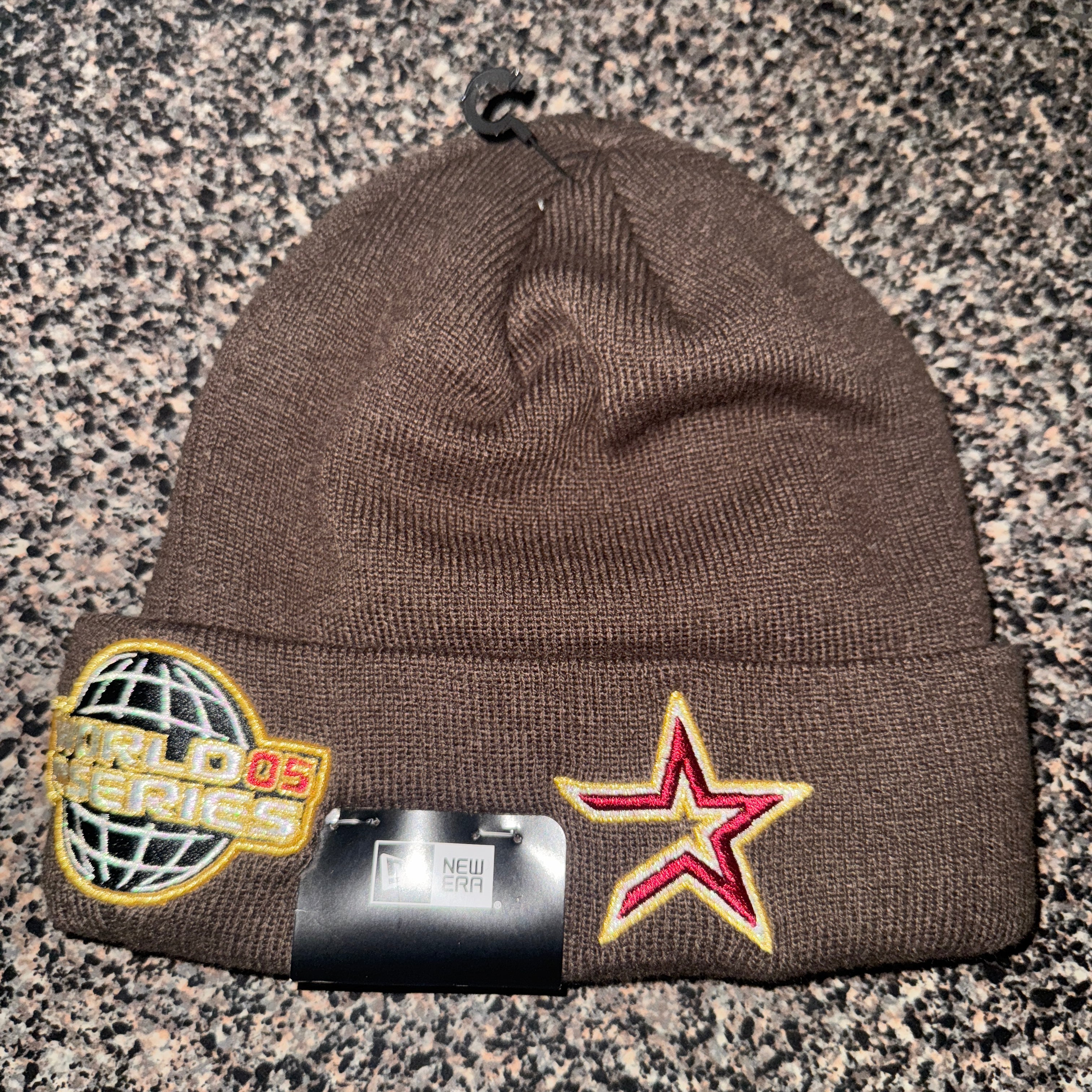 Houston Astros 2005 World Series Side Patch New Era Beanie Knit Hat (Brown/Red/Black/Gold/Iris)