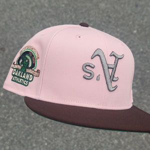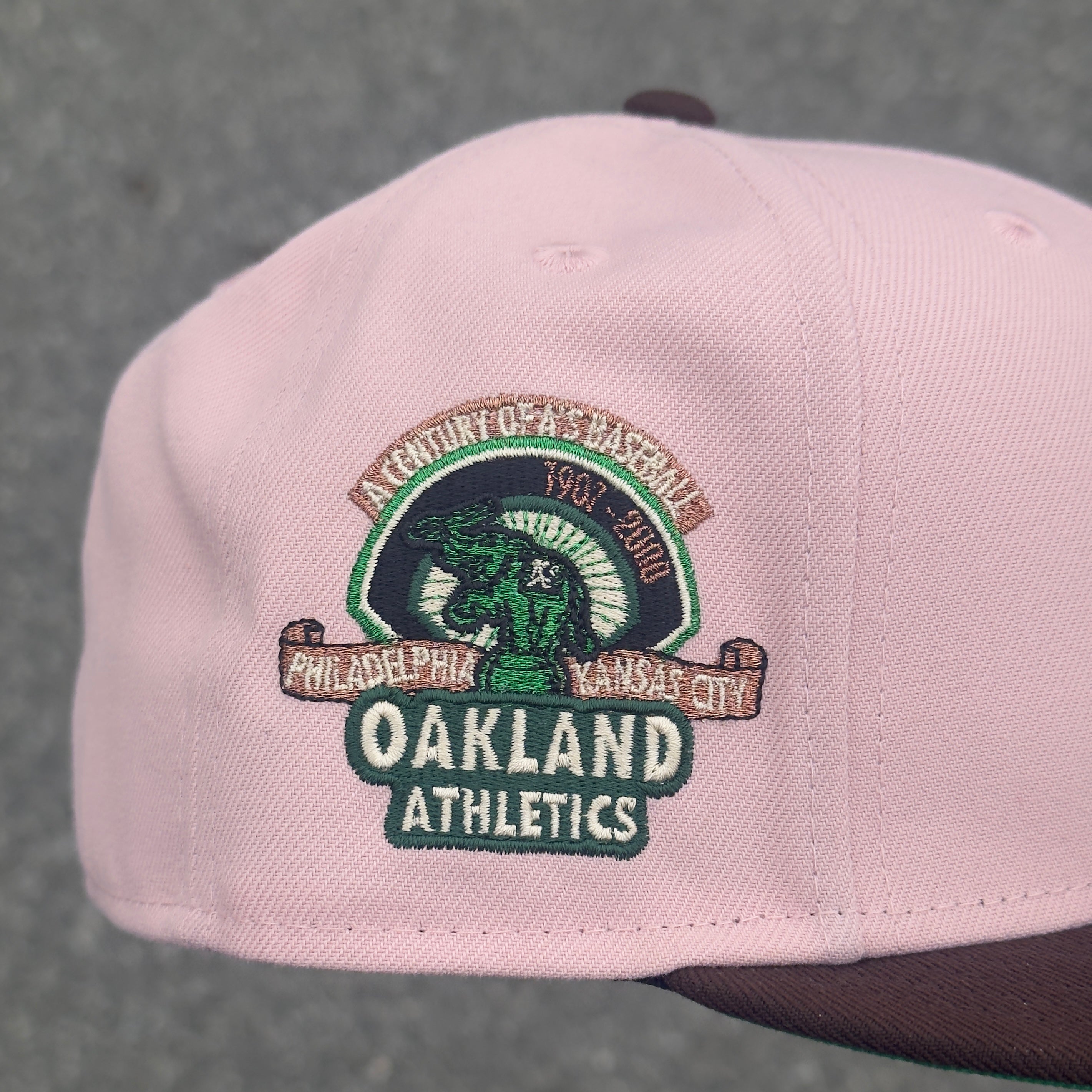 Oakland Athletics A Century of A’s Baseball Side Patch MLB Fitted Hat New Era 5950(Pink/Brown/Green/Pewter)