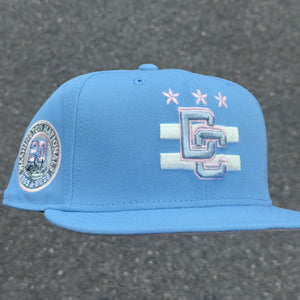Washington Nationals 20th Anniversary Side Patch MLB Fitted Hat New Era 5950 (Sky Blue/White/Silver/Pink)